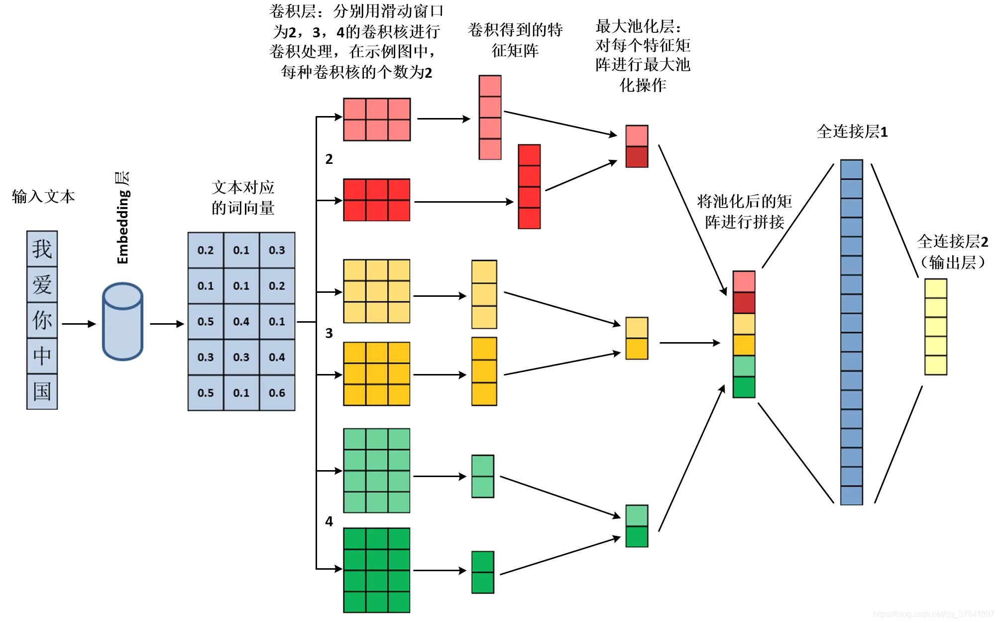 TextCNN原理图模型的训练数据数据来自MBTI互猜活动和本功能反馈数据。训练集的分类依据内容创作者的自判。 如果某类MBTI在创作时频繁出现某一个词(或语义),那么该词可能被模型理解为这个MBTI的特征之一。如果某位创作者多次出现相同冷门词(或语义),那这个词(或语义)可能被理解为对应MBTI的专属词(或语义)。