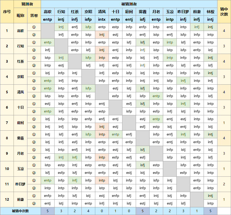 本期话题共计11个,共15位朋友完成此次互猜,参与者的MBTI类型有重复和缺失,参与者已知情,但不知道具体数量。