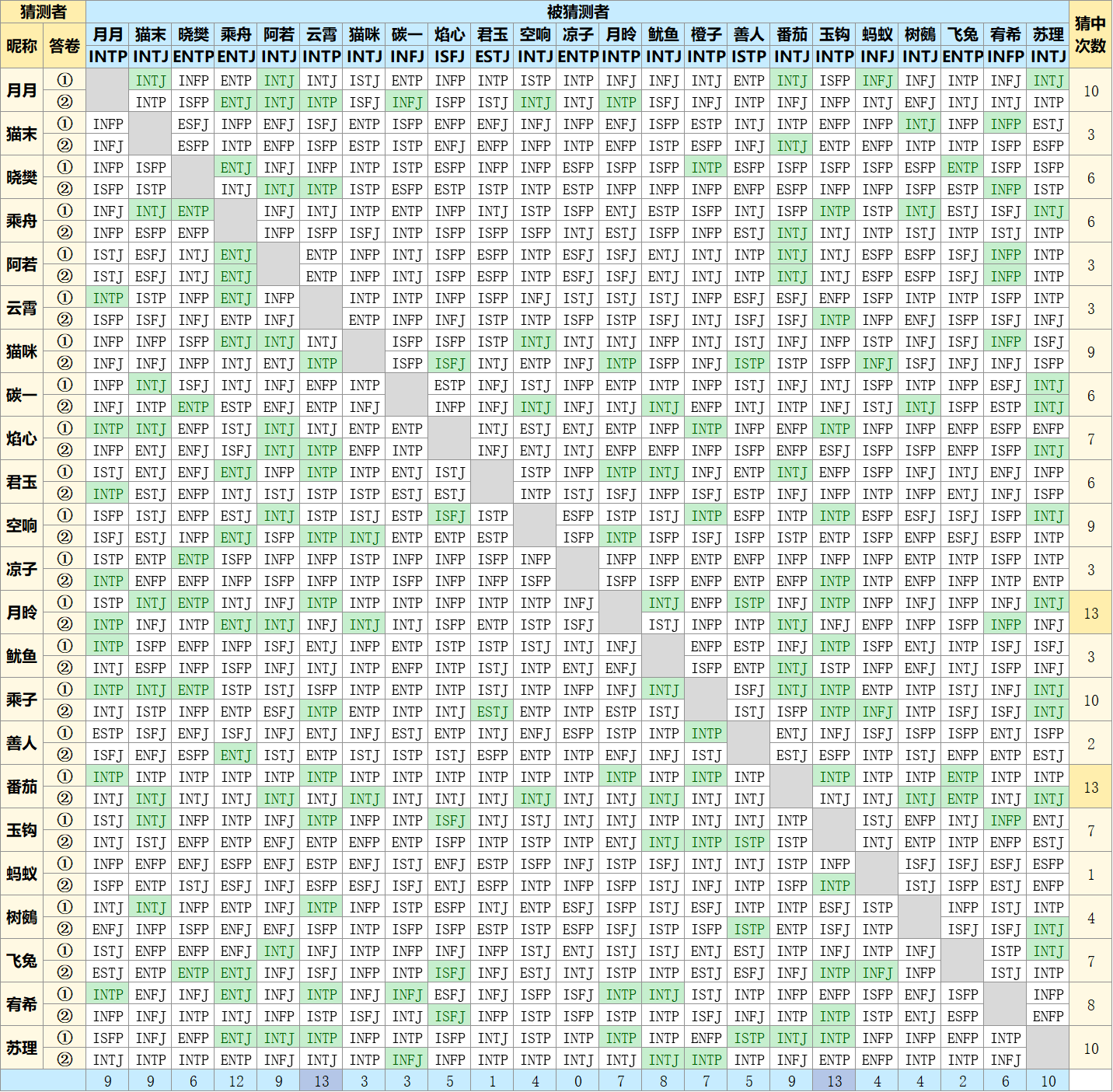 本期话题共计18个,共23位朋友完成此次互猜,参与者的MBTI类型有重复和缺失,参与者已知情,但不知道具体数量。