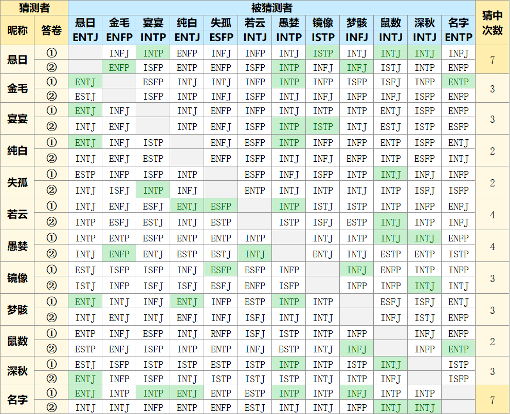 本期话题共计18个,共12位朋友完成此次互猜,参与者的MBTI类型有重复和缺失,参与者已知情,但不知道具体数量。